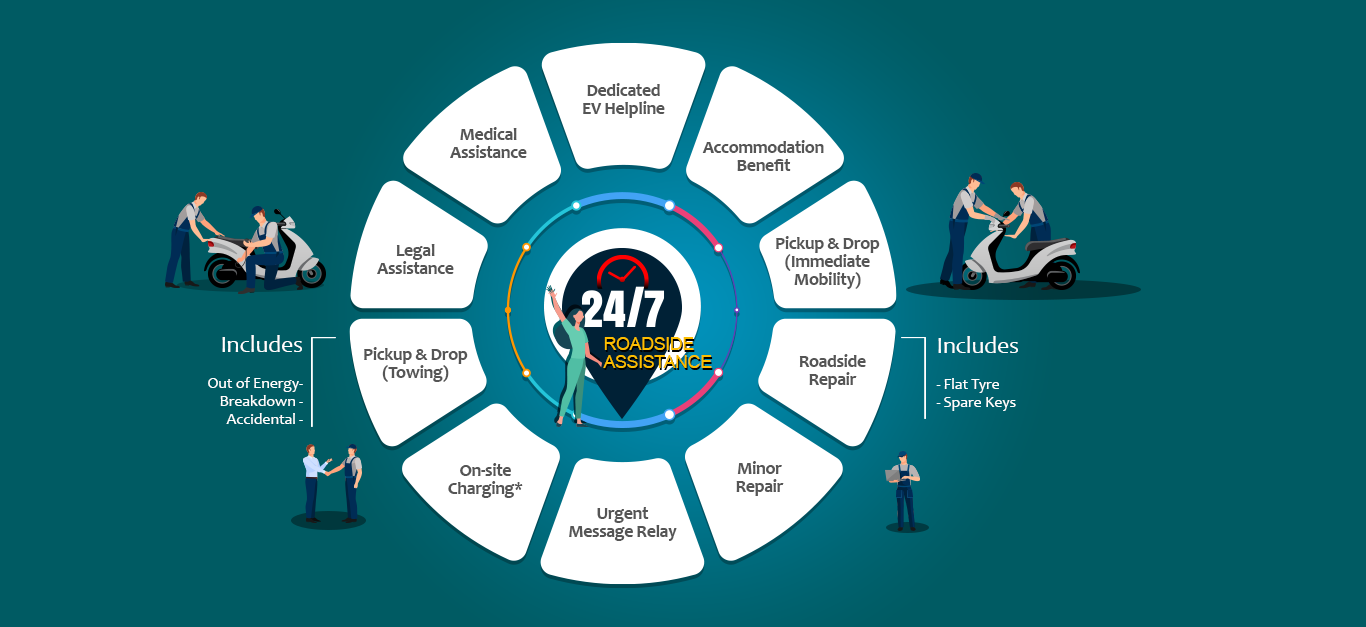 We are here to assist you with our specialized electric vehicle services and ensure peace of mind. Our team is just a call away to assist you anytime and anywhere in India. Regardless of whether you must get a tire changed, need an expert look into the electric vehicle’s motor/battery, etc. You can reach out to us at any time and avail yourself of the spot assistance for diverse situations